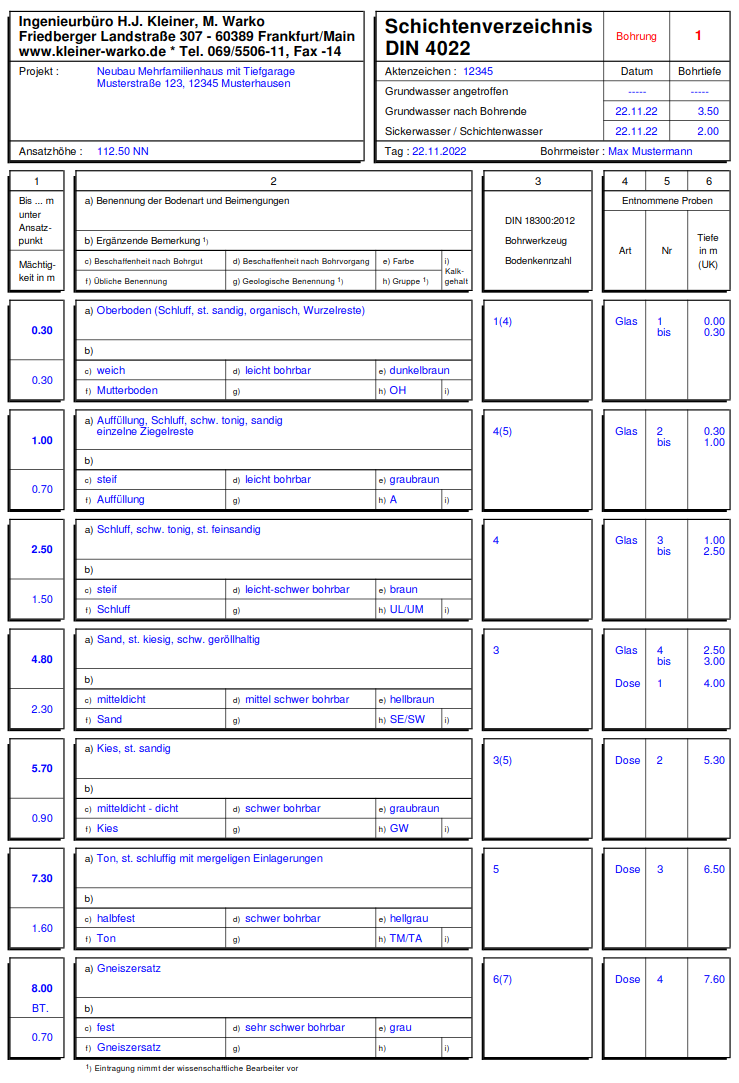 tätig zu sein. Die Durchführung und Abwicklung von Baugrunduntersuchungen, geotechnischer Beratungen, chemischer